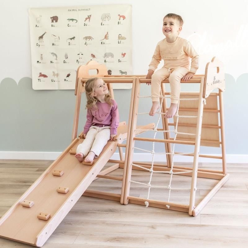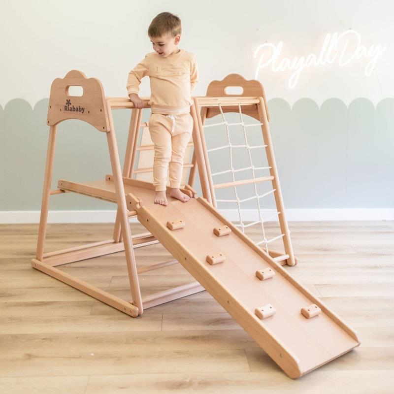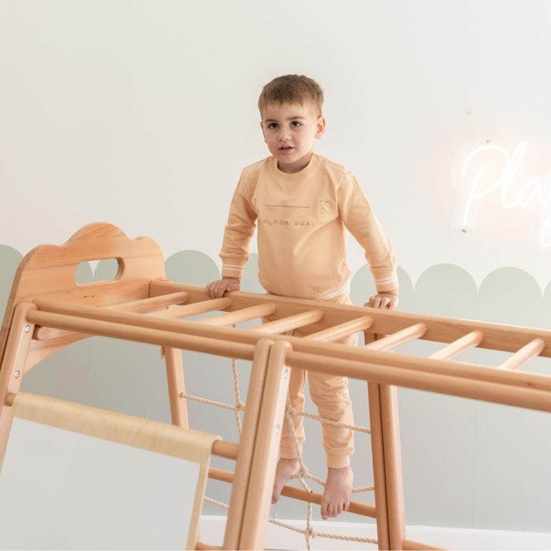 Tại sao bé yêu của bạn sẽ thích sản phẩm này? 1. Đa chức năng bao gồm Leo núi, Trượt, Xà đu, Vòng tập thể dục, Xích đu và Cầu bò, cũng có thể được sử dụng làm Bàn chơi. 2. Được làm bằng Gỗ sồi Croatia loại A, sử dụng sơn gốc nước không độc hại và được làm thủ công một cách cẩn thận. 3. Tăng cường khả năng phối hợp tay mắt, kỹ năng vận động và phát triển lòng dũng cảm của trẻ nhỏ thông qua trò chơi. 4. Thiết kế đường hầm độc đáo không chỉ khuyến khích trẻ bò mà còn mang lại niềm vui khám phá vô hạn. Sản phẩm có thể được sử dụng làm bàn chơi, bãi đỗ xe cho ô tô nhỏ hoặc cửa hàng kem và nhiều hơn thế nữa. 5. Được chứng nhận theo tiêu chuẩn đồ chơi Châu Âu CE EN71 và tiêu chuẩn an toàn đồ chơi AS/NZS 8124. 6. Có sẵn phụ kiện để mở khóa thêm nhiều niềm vui và trí nhớ hơn Bao gồm những gì? Gói Nhà chơi này bao gồm hầu hết mọi thứ để bắt đầu: 1. Cầu trượt 2. Leo núi 3. Xà đu 4. Vòng tập thể dục 5. Xích đu 6. Cầu bò / Bàn chơi 7. Leo trèo nhẹ nhàng Điều gì làm cho sản phẩm này trở nên đặc biệt hơn? 1. Được làm thủ công tất cả các góc bo tròn, tạo ra kết cấu mịn và mịn. 2. Thiết kế tay cầm trên cùng độc đáo, tay cầm hình đám mây hấp dẫn về mặt thẩm mỹ này tăng cường sự an toàn khi bé trèo lên đỉnh. 3. Dây cotton nguyên chất, cung cấp các điểm bắt mềm mại trong khi vẫn duy trì độ bền cao. 4. Thanh dễ cầm, đường kính khoảng 26mm được thiết kế dành riêng cho bàn tay nhỏ. 5. Được làm bằng gỗ sồi châu Âu loại A, có bề mặt chắc chắn, mật độ cao, không xốp. 6. Được phủ sơn gốc nước không độc hại và thân thiện với môi trường, mang đến bề mặt an toàn và mịn màng cho làn da của bé. Có thể thêm phụ kiện: 1. Xích đu cho bé - đệm thêm để hỗ trợ và bảo vệ mông nhỏ 2. Bảng vẽ từ tính hai mặt (đen trắng) 3. Võng - mang đến khoảnh khắc bình tĩnh, nghỉ ngơi những chiến binh nhỏ bé 4. Hố bóng - trượt vào hố bóng mềm chứa đầy những quả bóng màu phấn 5. Bảng chữ cái và số từ tính bằng gỗ gắn vào bảng vẽ từ tính để trẻ em của bạn học và chơi