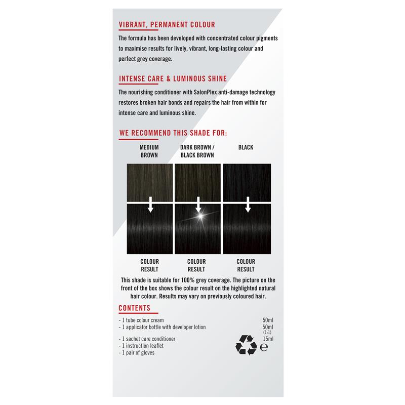 Nội dung đóng hộp: 1 tuýp kem nhuộm 50ml, 1 lọ bôi thuốc nhuộm 50ml, 1 gói dầu xả chăm sóc 15ml, 1 tờ hướng dẫn sử dụng, 1 đôi găng tay