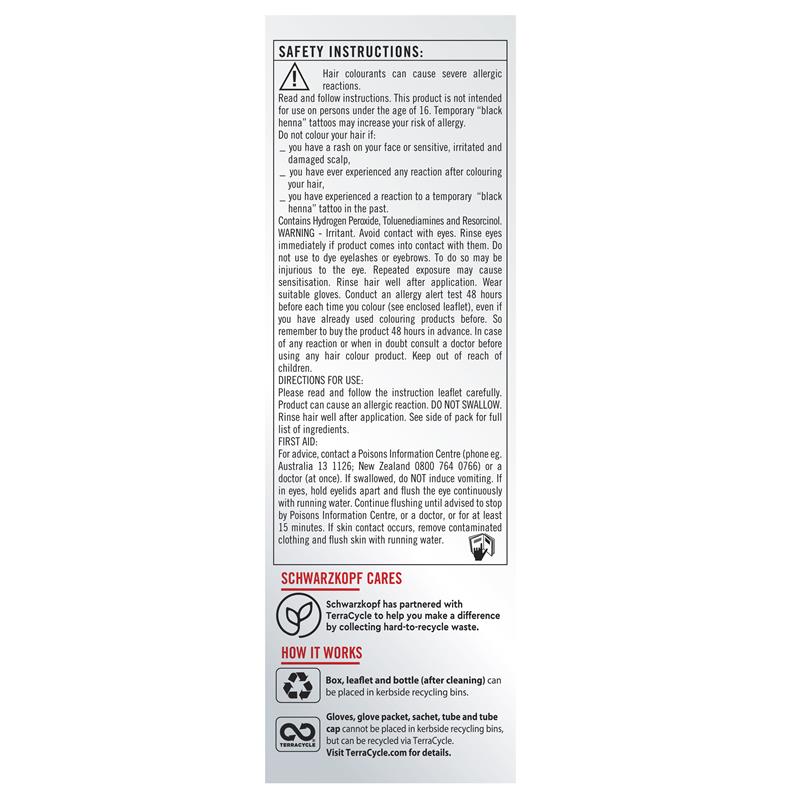 Thực hiện xét nghiệm cảnh báo dị ứng 48 giờ trước mỗi lần nhuộm (xem tờ hướng dẫn kèm theo), ngay cả khi bạn đã sử dụng sản phẩm nhuộm trước đó. Vì vậy, hãy nhớ mua sản phẩm trước 48 giờ. Trong trường hợp có bất kỳ phản ứng nào hoặc khi nghi ngờ, hãy tham khảo ý kiến bác sĩ trước khi sử dụng bất kỳ sản phẩm nhuộm tóc nào. Để xa tầm tay trẻ em."