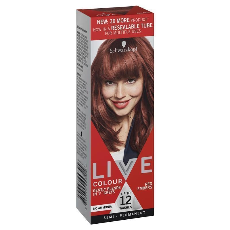 Schwarzkopf LIVE Colour Red Embers 75ml với lớp mặt nạ màu nhẹ nhàng không chứa amoniac mang lại tình trạng tuyệt vời, độ bóng và tông màu phong phú.