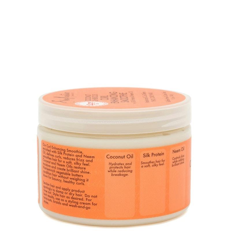 SheaMoisture's Coconut & Hibiscus Curl Enhancing Smoothie là một loại kem tạo kiểu tóc hoàn toàn tự nhiên được thiết kế đặc biệt cho tóc xoăn, gợn sóng. Dầu dừa được sử dụng trong công thức dưỡng ẩm này giúp dưỡng ẩm và bảo vệ tóc khỏi gãy rụng đồng thời bổ sung lượng dầu đã mất. Dầu Neem mang lại độ bóng sáng và tăng độ phồng và định hình cho những lọn tóc và lọn tóc xỉn màu, thiếu sức sống. Loại sinh tố tăng cường này chứa lợi ích của Silk Protein, một thành phần quan trọng giúp làm mềm những lọn tóc cứng, giúp tóc trở nên mềm mượt và dễ vào nếp.