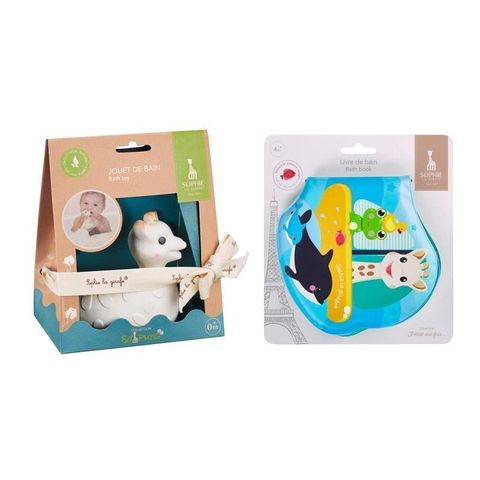 Bộ sản phẩm này bao gồm Đồ chơi tắm Sophie la girafe và Sách tắm. Đồ chơi tắm lành mạnh này được làm từ 100% cao su tự nhiên, có nguồn gốc từ nhựa cây cao su và sơn an toàn thực phẩm. Bé sẽ thích gặm các bộ phận khác nhau (tai, sừng, v.v.) của đồ chơi nổi Sophie la girafe có kết cấu mềm mại này. Có hình dạng giống như một chiếc phao, rất dễ để bé cầm nắm! Sản phẩm vệ sinh này không thấm nước, do đó đảm bảo khô tối ưu. Trong suốt các trang sách, bé sẽ khám phá Sophie la girafe và những người bạn của mình ở 3 thế giới dưới nước khác nhau: đại dương, tảng băng trôi và ao. Vui tươi và đầy màu sắc, cho phép bé tự kể cho mình nhiều câu chuyện. Thêm một chút nữa, bé sẽ thích thú khi tìm những chú cá vàng nhỏ ẩn trong mỗi trang!