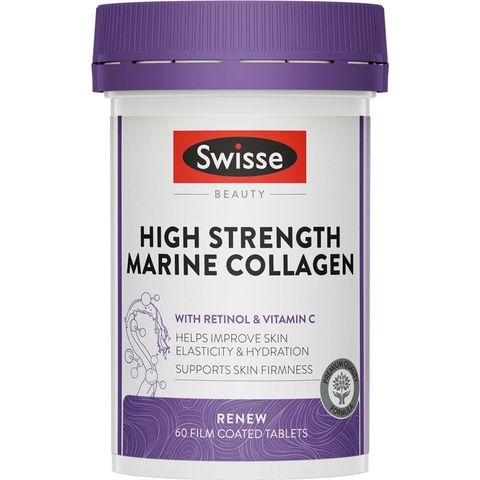 Swisse Beauty High Strength Marine Collagen là công thức tiên tiến được thiết kế dành cho những cá nhân muốn hỗ trợ vẻ đẹp từ bên trong. Mỗi liều dùng hàng ngày cung cấp 5 g collagen biển thủy phân, kết hợp với các chất dinh dưỡng như vitamin A, C và biotin. Hỗn hợp này hỗ trợ tái tạo da và độ săn chắc của da với sự kết hợp của vitamin C và hỗ trợ sức mạnh của tóc và móng với biotin. Collagen biển có nguồn gốc bền vững giúp cải thiện độ đàn hồi của da và độ ẩm của da, mang đến cho bạn một lựa chọn làm đẹp toàn diện. Hoàn hảo để sử dụng hàng ngày, viên collagen biển cường độ cao của chúng tôi hỗ trợ vẻ rạng rỡ hàng ngày của bạn.Phù hợp cho: Người lớn