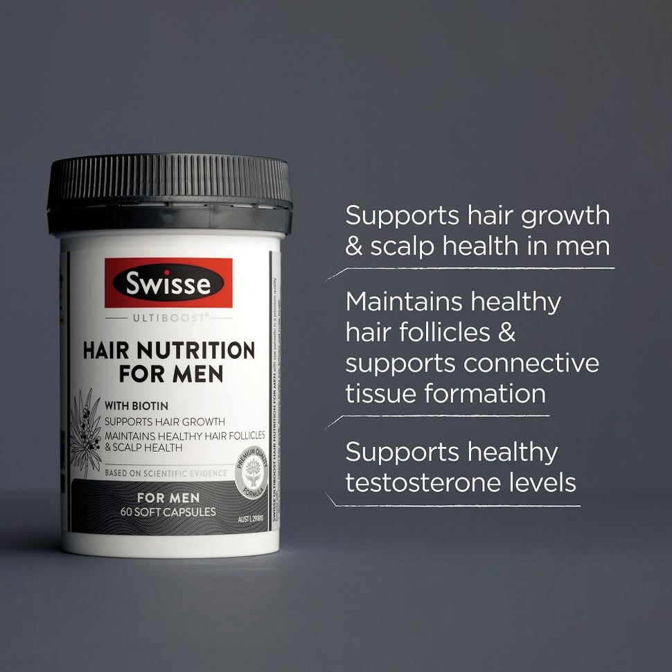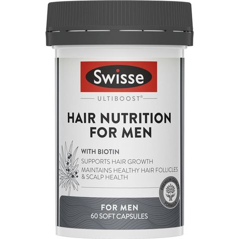 Khám phá bí quyết hỗ trợ mọc tóc với Swisse Ultiboost Hair Nutrition for Men. Thực phẩm bổ sung được thiết kế đặc biệt này kết hợp cây cọ lùn, có chứa axit béo tự nhiên, kẽm để hỗ trợ mức testosterone lành mạnh và biotin để duy trì sức khỏe nang tóc và hỗ trợ mọc tóc.