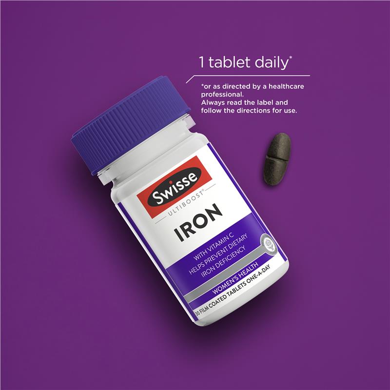 Duy trì sức khỏe máu với Swisse Ultiboost Iron. Công thức dịu nhẹ cho dạ dày này kết hợp sắt với vitamin B6 và tảo xoắn. Sắt và vitamin B6 có chức năng hỗ trợ máu khỏe mạnh và giảm mệt mỏi, là lựa chọn lý tưởng cho người ăn chay và ăn chay trường, là người bạn đồng hành hoàn hảo hàng ngày.