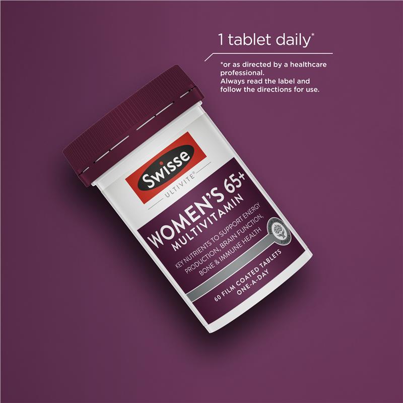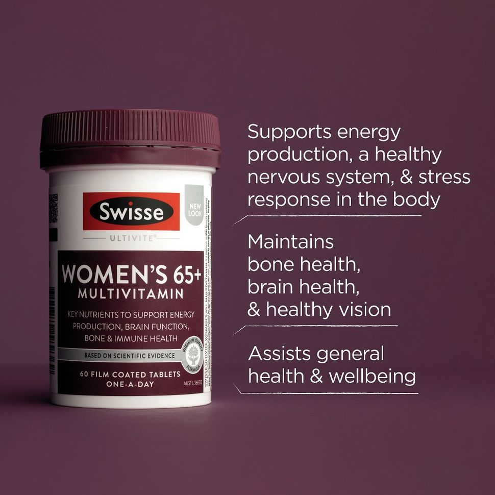 Hãy chào đón sự trưởng thành với Swisse Ultivite Women's 65+ Multivitamin. Công thức được thiết kế riêng này với Vitamin D cho sức khỏe xương và Vitamin B hỗ trợ năng lượng giúp bạn tận hưởng từng khoảnh khắc của tuổi xế chiều. Việc bổ sung các chất chống oxy hóa như Vitamin E cũng giúp giảm các gốc tự do hình thành trong cơ thể. Hãy đón nhận cuộc sống tràn đầy trí tuệ và sức khỏe với Swisse Ultivite Women's 65+ Multivitamin.