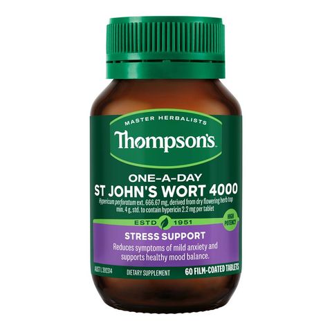 Thuốc St. John's Wort 4000 của Thompson One-A-Day có tác dụng làm giảm các triệu chứng lo âu nhẹ và hỗ trợ cân bằng tâm trạng lành mạnh.