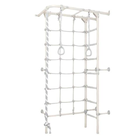 Swedish Corner Wallbars - S4 là khung leo trèo cho tường góc, được thiết kế dành riêng cho nhà ở hoặc trung tâm nơi không gian hạn chế. Bộ đồ chơi này đi kèm với xà đơn, thang massage để leo trèo, dây leo, vòng tập thể dục và lưới nhện. Cấu trúc tổng thể có thể chịu được trọng lượng lên đến 100 kg (tải thử - 200 kg).