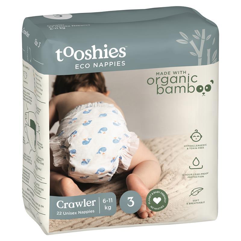 Tã tooshies làm bằng tre hữu cơ là lựa chọn bền vững nhất khi hiệu suất, sự thoải mái và việc chăm sóc em bé là điều không thể thương lượng. Mềm mại hơn và thấm hút tốt hơn, các vật liệu hữu cơ làm cho chiếc tã này siêu mềm, thoáng khí và không chứa chất độc hại để làm dịu những đứa trẻ nhạy cảm. Với mục tiêu bảo vệ môi trường, những chiếc tã này có mặt sau phân hủy sinh học 100% và lõi tre pha trộn phân hủy sinh học.Với thiết kế hình cá voi tuyệt đẹp của chúng tôi, bé yêu của bạn sẽ có khoảng thời gian tuyệt vời trong tã tập bò cỡ 3 dành cho cả nam và nữ của chúng tôi. Những chiếc tã này được thiết kế bằng vật liệu siêu mềm và linh hoạt để chuyển động và thích nghi với sự phát triển của bé. Với khả năng cách nhiệt tự nhiên, kháng khuẩn, những chiếc tã này có khả năng bảo vệ chống rò rỉ trong 12 giờ để giữ cho bé khô ráo cả ngày lẫn đêm.