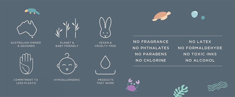 Tuyên bố về sản phẩm: Không có hương thơm, Không có phthalate, Không có paraben, Không có clo, Không có latex, Không có formaldehyde, Không có mực độc hại, Không có cồn
