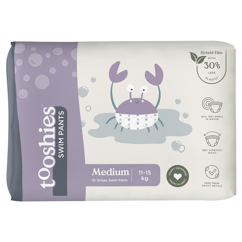 Quần bơi tooshies là lựa chọn bền vững nhất cho quần bơi dùng một lần, khi hiệu suất, sự thoải mái và việc chăm sóc em bé của bạn là điều không thể thương lượng. Được làm bằng màng lai với ít hơn 30% hóa dầu và không chứa kim loại nặng, chiếc quần này sẽ không bị phồng trong nước và an toàn với clo và nước muối.Quần bơi cỡ trung dành cho cả nam và nữ của chúng tôi có họa tiết cua dễ thương và có cạp chun co giãn 360 độ mềm mại cùng hai bên hông dễ dàng xé ra để mặc vào và xé ra dễ dàng.