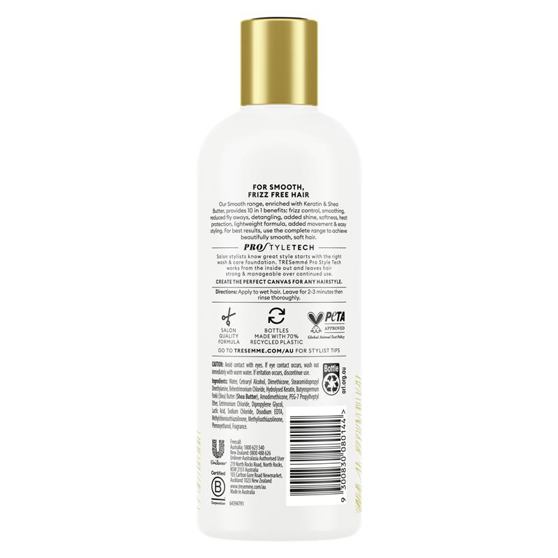 Dòng sản phẩm Smooth của chúng tôi, được bổ sung Keratin & Bơ hạt mỡ, mang lại 10 lợi ích trong 1: kiểm soát xơ rối, làm mượt, giảm tóc bay, gỡ rối, tăng độ bóng, mềm mại, bảo vệ tóc khỏi nhiệt, công thức nhẹ, tăng chuyển động & dễ tạo kiểu. Để có kết quả tốt nhất, hãy sử dụng toàn bộ dòng sản phẩm để có mái tóc mềm mại, mượt mà tuyệt đẹp.Dầu xả Smooth là bước thứ 2 trong dòng sản phẩm Smooth của chúng tôi. Hướng dẫn: Thoa lên tóc ướt. Để trong 2-3 phút rồi xả sạch. Kể