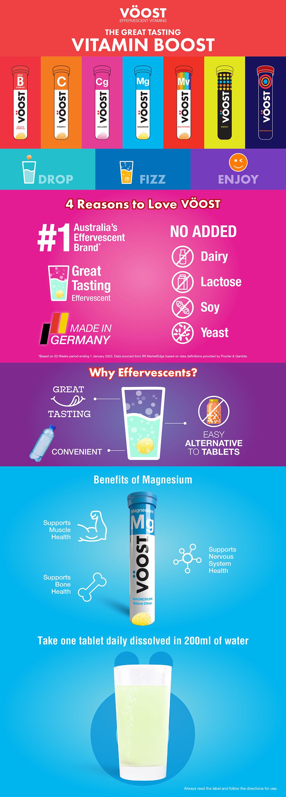 Thực phẩm bổ sung khoáng chất không nên thay thế chế độ ăn uống cân bằng. Nếu các triệu chứng vẫn tiếp diễn, hãy trao đổi với chuyên gia chăm sóc sức khỏe của bạn. Chỉ dành cho người lớn. Để xa tầm tay trẻ em. Bảo quản ống ở nơi khô ráo, thoáng mát. Bảo quản dưới 25°C. Không sử dụng nếu niêm phong chống giả mạo bị hỏng hoặc mất. Chứa Saccharin Sodium.